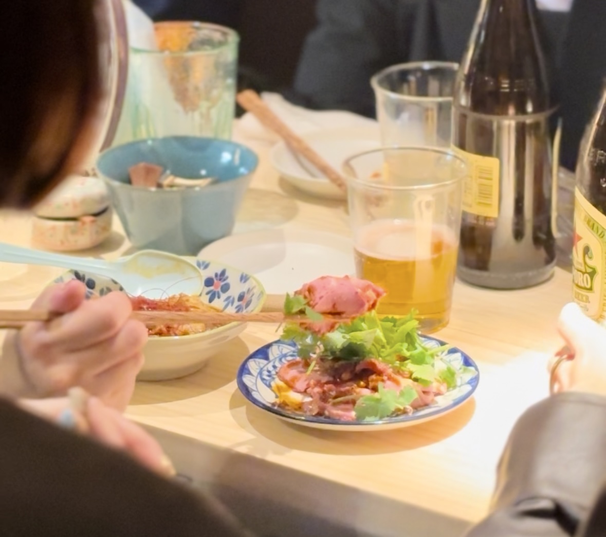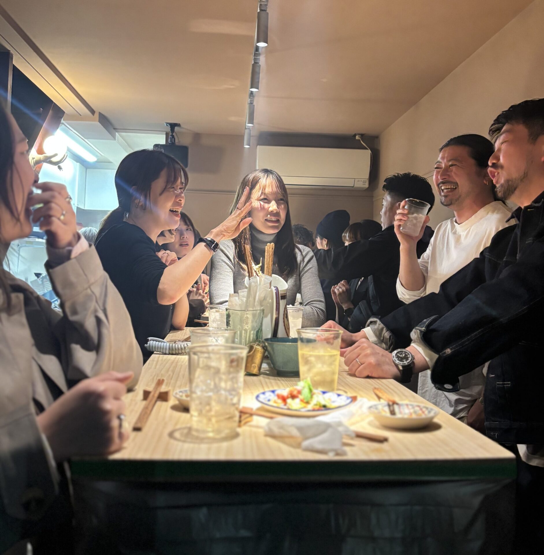- 一つのテーブルを囲むスタイルが、「みんなで飲んでる」という雰囲気で楽しい